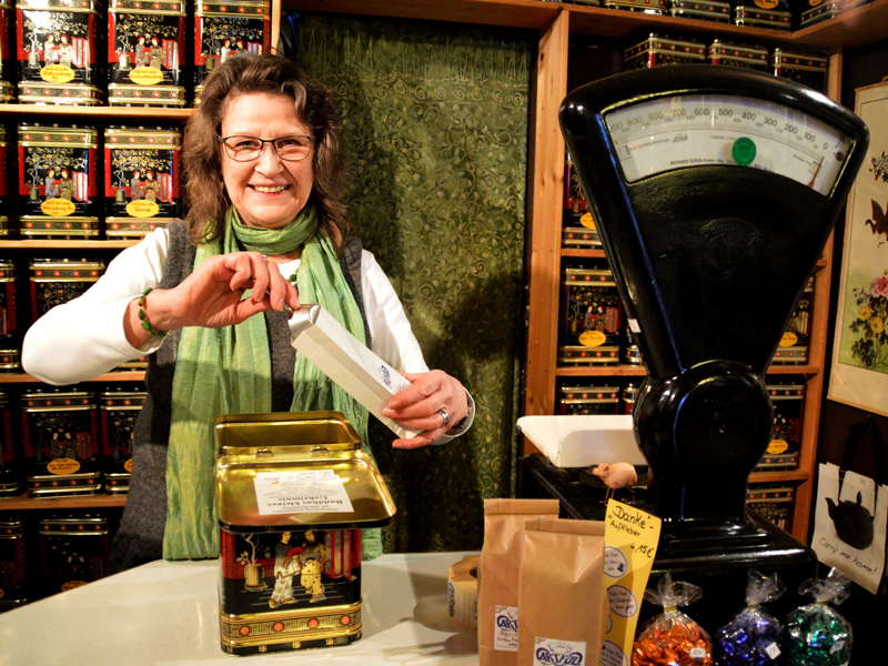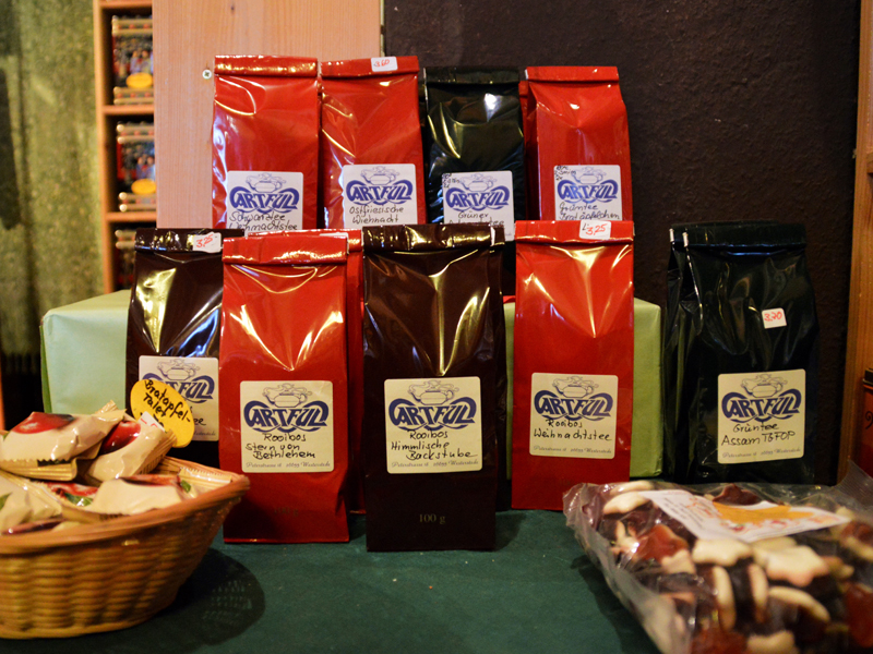 Passend zum Tee, um sich rundum wohl und warm zu fühlen, finden Sie bei uns in der Langen Straße auch Räucherstäbchen und Aromaöle sowie eine große Auswahl an weiteren Geschenkartikeln, Schmuck und Textilien.